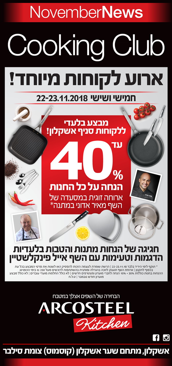 נכין תפריט שלם מהמנות הראשונות, תוספות, מנות עיקריות וקינוחים והכל בהנחייתו של השף אייל פינקלשטיין.